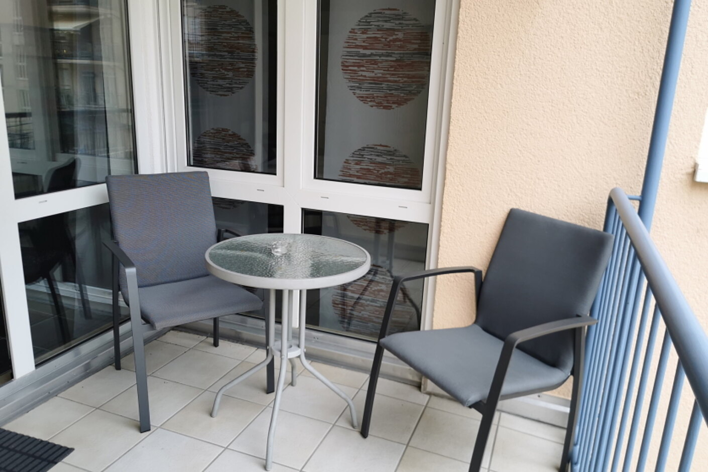 - Balkon mit Tisch und 2 Stühlen