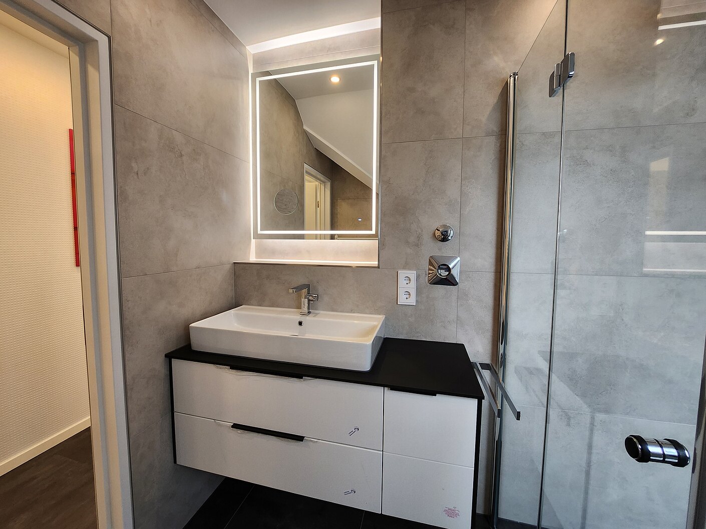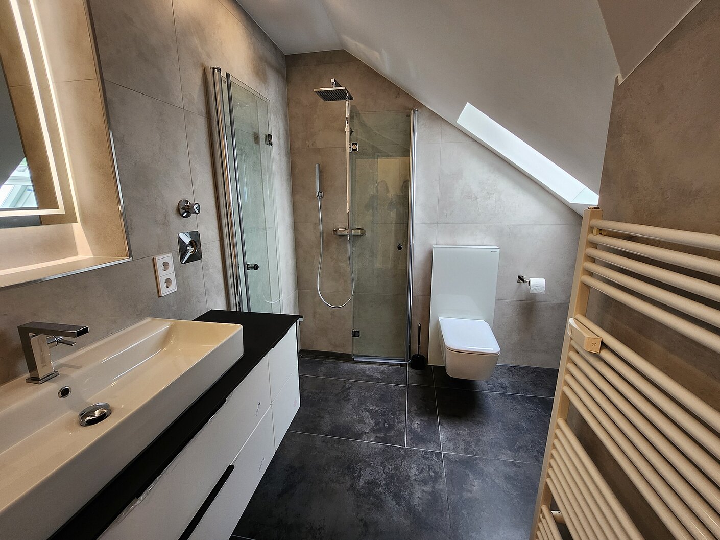 - Modernes Tageslichtbad mit Walk-in-Dusche, WC und Fön